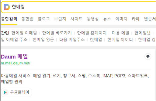 > 한메일(다음메일) 앱 다운로드 -> 안드로이드