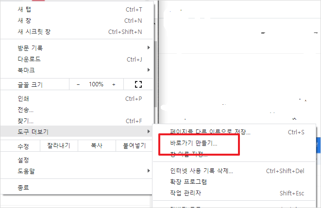 최근에는 보통 크롬에서 인터넷 작업을 하게 되실텐데요. 크롬에 바탕화면 바로가기 만들기를 할 수 있는 기능이 내장되어있습니다. 설정화면에서 할 수 있는데요. 설정화면은 크롬 브라우저 우측 상단에 점 세개 모양의 아이콘을 누르면 설정할 수 있습니다. 그 뒤, 설정 메뉴를 따라 들어가서 설정을 할 수 있겠습니다.