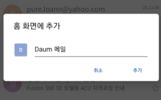먼저 한메일(hanmail 홈페이지)에 들어간 후, 브라우저 설정 버튼을 눌러 도구메뉴를 연 다음, '홈 화면에 추가' 와 같은 또는 비슷한 문구를 찾아 수행합니다.
