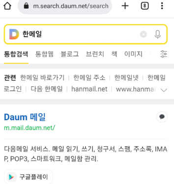 > 한메일(다음메일) 앱 다운로드 -> 안드로이드